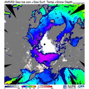 私のチームが運営する北極域データアーカイブ(ADS)では、JAXAの地球観測衛星”しずく”(AMSR2)によって取得された様々なデータを公開しています。