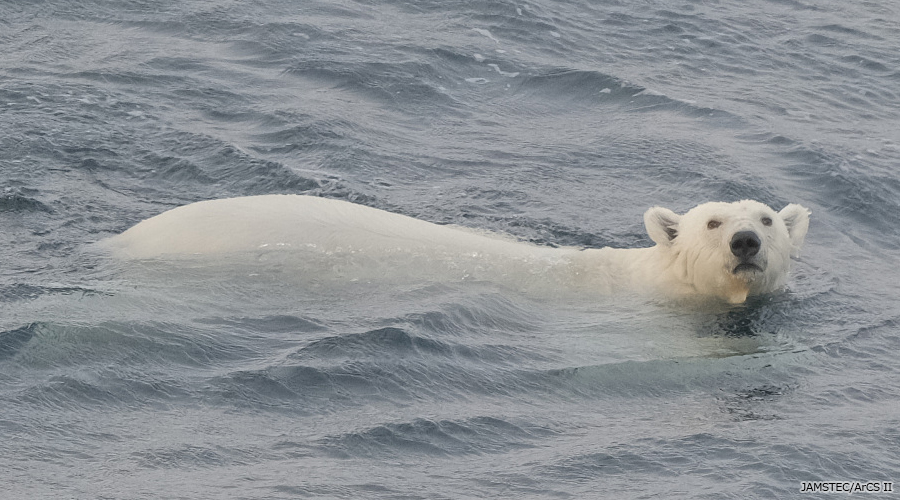 海洋観測中に、一頭のホッキョクグマが突如船の脇からご挨拶。夕食時なのに、多くの人がクマを一目見ようと甲板に大集合。第一目撃者には、2年ぶりの「シロクマ賞」が贈られました。