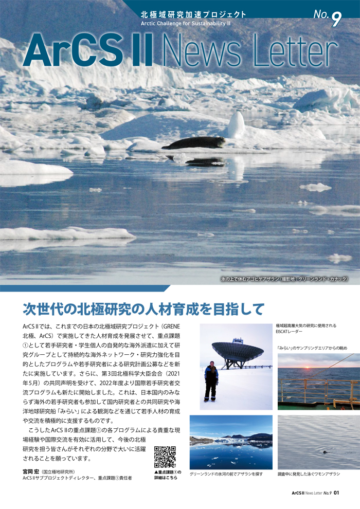 今号では「次世代の北極研究の人材育成を目指して」と題して、ArCS IIの重点課題①における公募プログラムに採択された若手研究者の活動を紹介しています。