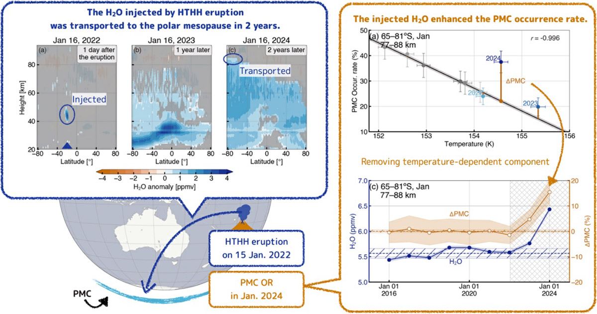 論文名:Responses of polar mesospheric clouds to water vapor anomalies caused by the 2022 Hunga Tonga-Hunga Ha'apai eruption