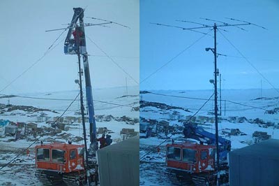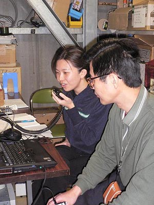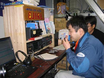 この日は愛知万博を始め日本アマチュア無線連盟の開設する特別局、そして一般局を対象に小学生・中学生、そして高校生等を優先し、ここ南極昭和基地(8J1RL)との交信を楽しんでもらおうという企画です。昭和基地のアマチュア無線局は有志で構成したアマチュア無線係で運用しています。免許は持っているものの、日本では電波を出したことがなく、この日のオペレーションが始めてという隊員もいました。そんな隊員のもとに日本からの声が届きます。10Wの出力でもしっかり聞こえたものもありました。むしろしっかりした子供達を前に慣れない新米オペレータがあたふたするような場面もあり、ベテランオペレータはなかなか目が離せません。