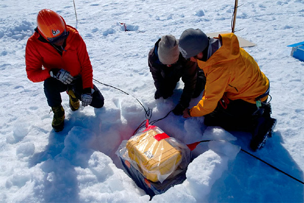 トッテン氷河上に設置して、氷河の厚さを1年間測り続け、1年間でどれくらい氷河が融かされたかを測定します。