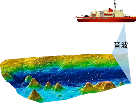また、南極海域を安全に航行するための海図には、正確な水深データが必要不可欠です。今年度復旧した「しらせ」搭載のマルチビーム測深機を使って、高精度の海底地形データを取得します。