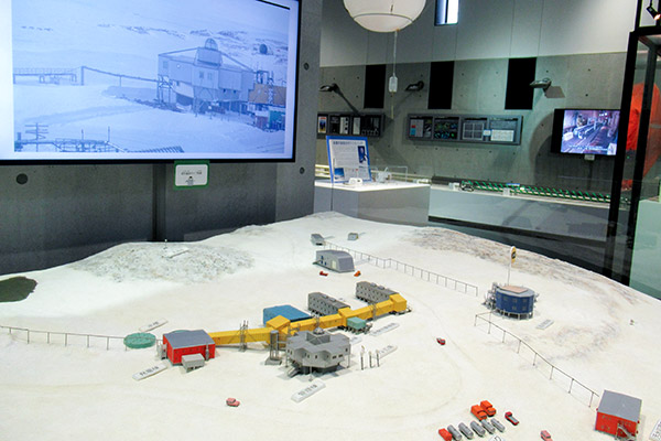 北極の動物の剥製、北極についてのパネル展示、映像展示